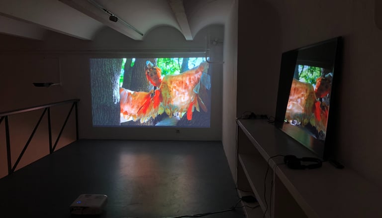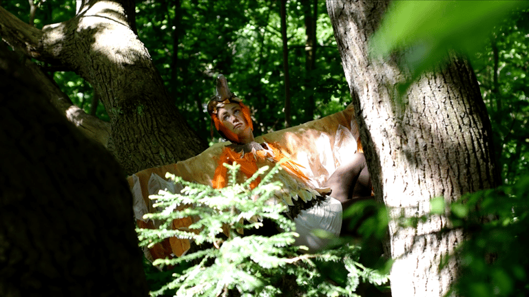 This video is the story of a ghost bird whom I have named Audrey. She is small parrot made extinct when eaten out of existence by British colonists on Norfolk Island. By transforming myself into the extinct Norfolk kākā I engage in an attempt to bring her back to life, allowing her to consume me instead. Audrey & I, our histories tied asks in what ways we can confront the terrors of the past to reflect on impending terrors of the future?