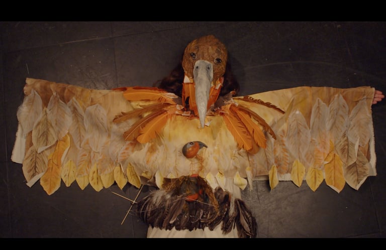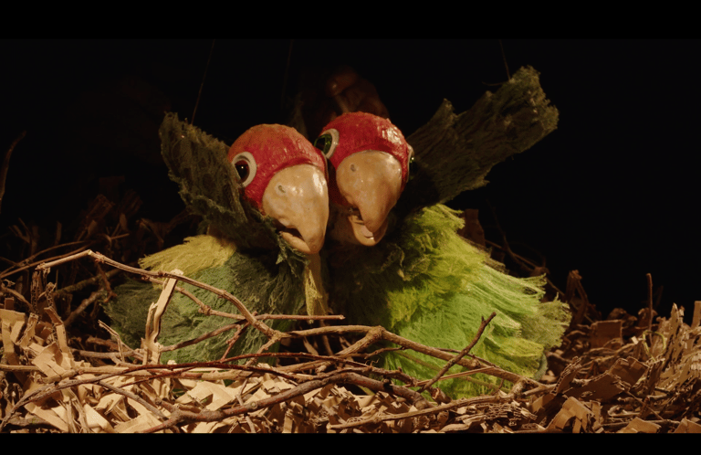 A mishmash flock dance a ritual dance around a maypole, a Carolina Parakeet egg breaks out of the theatre stage, a Guam Kingfisher sings in riddles, a Norfolk Kaka learns to fly and and a Paradise Parrot awakens from her deathly slumber to discover she is a skeleton.
