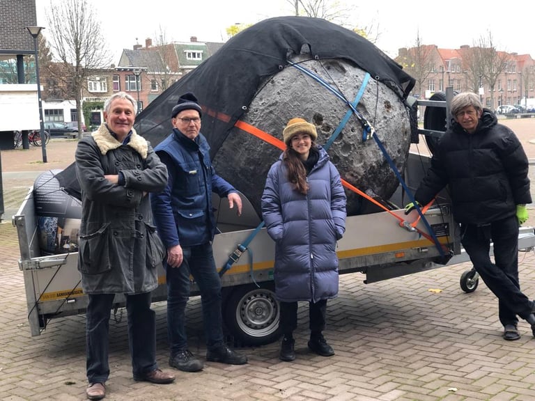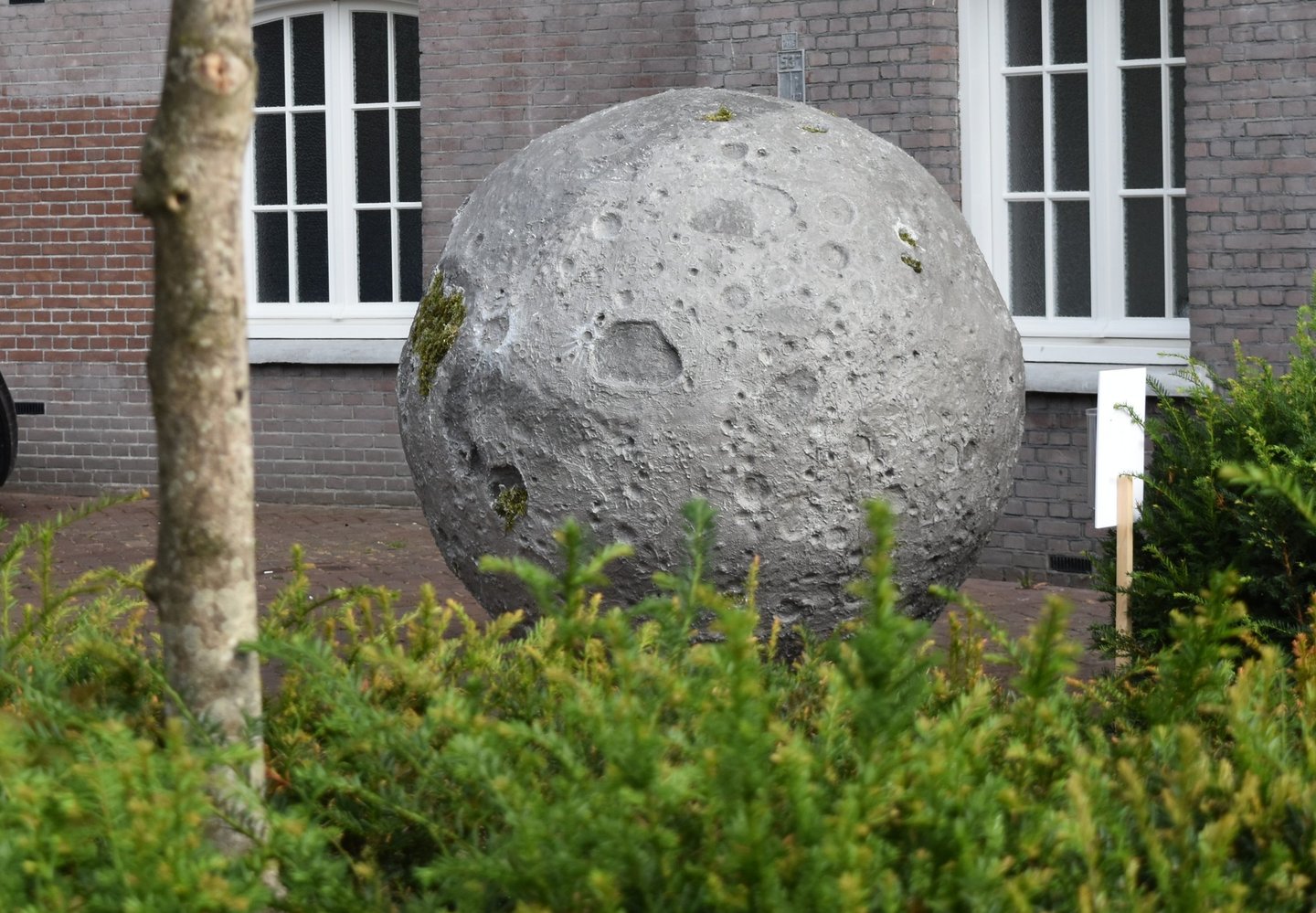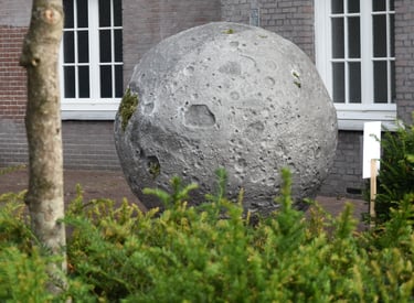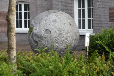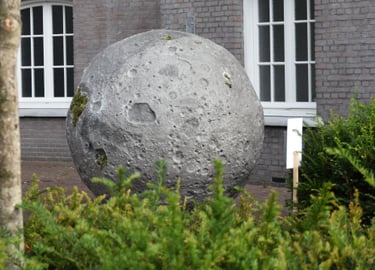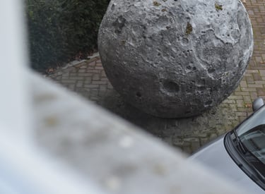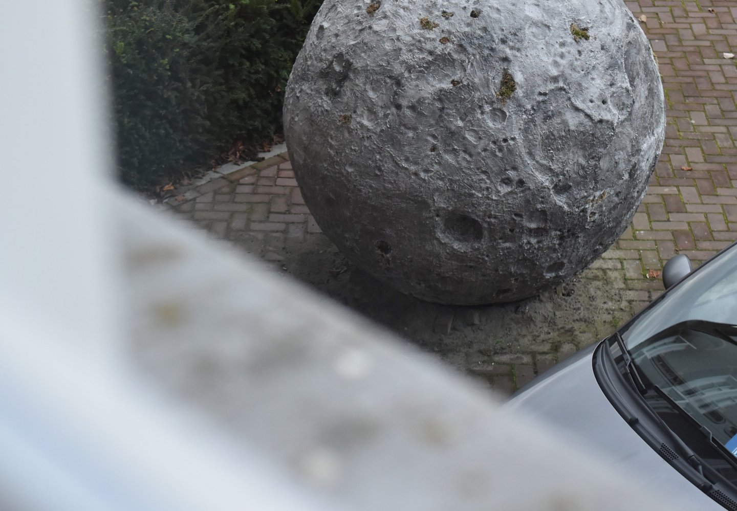It was initially commissioned as a work for public space in Breda. I installed the moon so that it appeared to have crash-landed to Earth, and particularly chose a site representative of the society that falls apart in In the beginning…: the paved grounds of luxury capitalism, a hotel carpark.